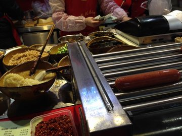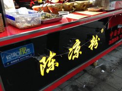 陈凉粉本来还是挺出名的,这家店在较场口得意世界招商银行的对面。就是那种自己搭建的小店,很小一个空间,买了自己端起吃的。店的前面还是黑底的LOGO标志出来了的,台上面除了凉粉还有凉面及其他的小吃在卖的。包括烤香肠的架子也是现场开始烤起的。要了一份凉粉,卖相感觉还是可以的,但是味道个人真的觉得很一般,没有觉得很好吃的感觉的。