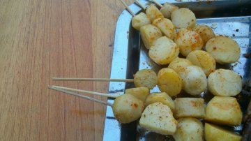 以前初中的时候她就在学校门口卖,那么多年了还是那么好吃。从来不吃鸡翘翘的我也告咯一串,确实很香,但是吃多咯还是会腻哈,不过她处理得很干净。我最喜欢的还是鸡心,简直只香啊,各种外焦里嫩,而且刷上去的红油特别好吃,也是跟其他烧烤不一样的地方。素菜推荐土豆和育儿!