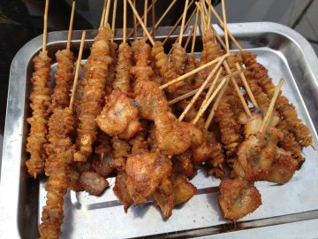 陈孃烧烤是以前在陕西街摆的,中午放学在陕西街,下午放学在文翁路那边,学生很多,因为那么多年了,味道还是那么好吃,价格也没涨。最喜欢吃的是烤鸡心,红油刷上去烤的,外焦里嫩啊,鸡心还是多汁的。特色还有鸡翘翘,虽然我从来不吃这些,但是由于陈孃的东西都处理得很干净,试过一次,很香!鸡油都烤出来了的!