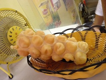 慕名前往的一家小店,就在家附近但是平时就是没看见,因为门面很小。这次品尝了鸡蛋仔觉得味道不错,吃起来一个一个小圆球也非常好玩。味道有点像鸡蛋蛋卷,但是比蛋卷软。很热的天,鸡蛋仔出炉要用风扇降温,真是好玩。
