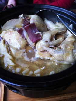 网上在线订座的,来之前的前一天会打电话再跟你确认一下。818广场感觉人气不是很旺,来的人比较少。佰家如意鸡(半),最快上来的,估计厨房煮了好多吧哈哈,汤非常鲜美,鸡肉已经煮得酥烂了,鸡被切了几大块,基本4人每人1-2块就吃完了,锅子看上去很深,汤勺一舀就知道其实好浅,量少。查看更多