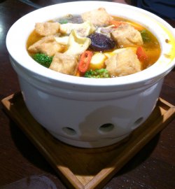 团购了他们家三十五元买五十元的现金券,提前订了位。以前去过他们家,挺喜欢的,看到有团购,就立马下手了,而且现金券有自由度么,爱吃啥点啥。 我们四个人要了问政山烤笋,凉拌苦蕨菜,百家如意鸡,浓情芋儿骨,胡适一品煲,米汤小唐菜,家味小米糕,再泡了一壶茶。其他菜以前都吃过,只有胡适一品煲没吃过,对这个名字和菜品好奇,所以点了,端上来发现,貌似就跟俺们平时吃的全家福差不多。天冷了,吃他们家一煲一煲的东西,觉得很舒服啊。百家如意鸡很嫩很鲜的说,浓情芋儿骨是用腐乳烧的,我很喜欢。他们家的小米糕每次来都点哦,朋友们都说很赞!查看更多