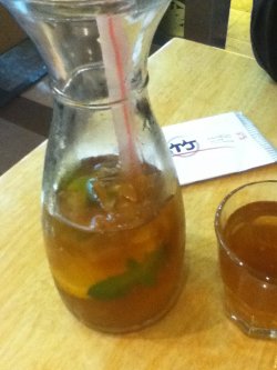 隐竹在港汇六楼也占据了很大的一个面积,红色的磨砂玻璃看起来非常的宽敞明亮,餐厅内有一些盆栽花和风景花作为装饰,红色的座椅搭配白色的方桌,看起来非常干净。三文鱼:放在冰块上面的,保留三文鱼鲜嫩的口感,而且切的很厚实,四十块五片的价格还是挺厚道的。隐竹凉茶:十元,最喜欢他家的这款饮料了,入口清凉润喉,搭配寿司喝非常的过瘾。查看更多