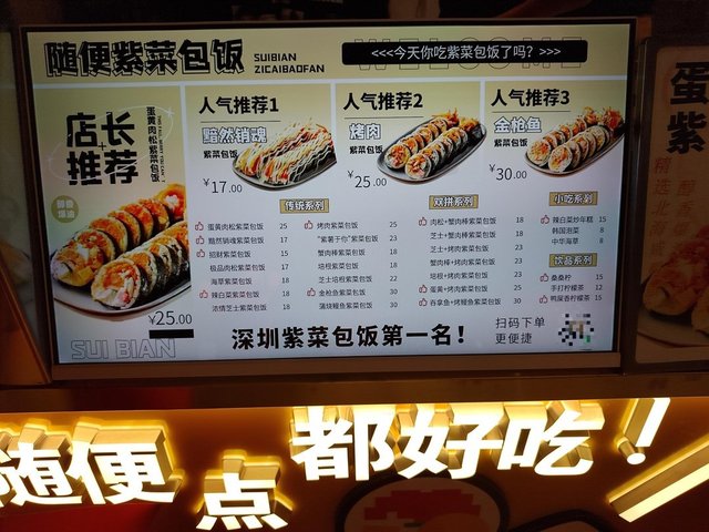 隨便紫菜包飯 (iN城市廣場) (深圳) 網址: https://s.openrice.com/KtbS0W0aXoL00 地址: 深圳福田區華強南深南中路1095號iN城市廣場LG層LG-T-29-2號鋪 電話: +86 17665277111