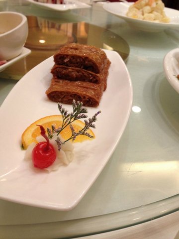 生日宴,地段不错,交通方便。冷菜色拉,土豆的,还行。蓝莓山药,蓝莓酱一般,这个自己家也能做。白切肚子,不喜欢猪肚,总觉得有点苦味。拉皮,这个出其不意的好吃。素鲍鱼,豆皮卷,都不错。热菜,荠菜鱼片,鱼片没骨头,小孩子也能吃,味道不错。水煮牛蛙,量还算大,很油。。。。铁板日本豆腐,烫口,味道很不错。八宝鸭,皮脆,馅料丰富,确实蛮好吃。蛋花酒酿小圆子,酸甜的,很好吃。总之,这家店的量不大啊~~~聚会,图个热闹罢了。。。…查看更多