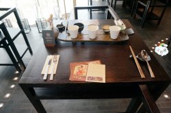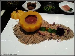 微博上和点评上都相当火爆的一家,整好有空,顺着酒仙桥逛逛,就来这里吃了。地方还是很好找的,就在三楼,一处景观顶棚的边上,店里的座位不算很多,工作日的中午,都能爆满啊,可见多火爆。整体色调是黑的,服务员都带着面纱,第一次看到,挺有意思的,原来是为了方便卫生。这里据说有很多明星都来过,非常喜欢,还是500万买断的独家秘方,食神戴龙做的国宴菜。处处都很讲究。茶分男士和女士的,龙井,普洱,玫瑰,洋甘菊等,都是有针对性的茶品。98元和128元的两套餐,我选传统的食神咖哩牛腩。米饭是三种口味的,跟牛腩伴在一起,挺有意思。牛腩真嫩,很入味。前菜是“致青春”,很别致浪漫的入流菜名。汤是高棉的微笑,实在好听,类似冬阴功的口感,牛腩一样很香嫩。甜品是杨枝甘露,配上西柚,微微凉,爽心。一杯红酒,更开胃。服务员很贴心,每道菜上来,还告诉你怎么食用,更换杯碟很及时,还有店家故事可以听听,不错。最有意思,自己用的筷子,还可以带走,有着雕爷的logo,当作纪念。很小资的地方,创意的菜品。 查看更多