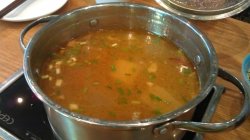 味道挺不错的一家火锅店,店内有五种口味儿的锅底,各有各的特色。我们同去了4个人,点了四种不同口味的小锅底,白玉菌菇汤、酸萝卜老鸭汤、鸡汁海带汤和江城满江红,菌汤的锅底味道不错,菌香味很鲜美。老鸭汤里的酸萝卜非常好吃,汤的味道也不错。鸡汁海带汤锅底相对比较清淡,味道还是挺鲜的。江城满江红看着就很诱人,红红的一层,涮出菜来香辣可口,非常好吃!查看更多