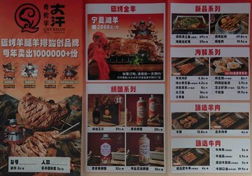 吃大汗烤羊腿羊排 / 草原大拌菜 / 雞脆骨 / 紅柳精品羊肉串 / 炒米粉 / 特色烤餅