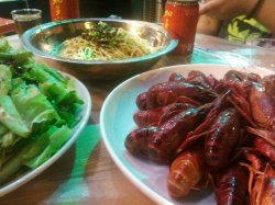 呵呵,又到吃虾的季节了,我最喜欢了,虾虾虾虾~~~一到吃虾的季节,这里的生意就好得不得了,经常要排队吃过它家油焖大虾,无功无过,正常水平;蒸虾很好吃,没有抽虾线,保证了虾肉的紧实,它家的蘸料很特别,闻起来有点香,剥出虾肉蘸上一点特别好吃虾子还是母虾好,黄多啊!现在的虾比先前的长得肉要饱满些了,更好吃些凉面一绝,必点啊!不得不尝!查看更多