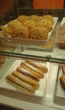 这家店就在西单大悦城地下一楼。逛街顺便买了点面包,我们来的晚了点,像肉松面包那些很多品种都没有了,于是就选了奶油卷、奶油酥盒跟黑米糕。消费16元。奶油卷还挺好吃的,中间是奶油,外层的面包上还有霜糖,的确很酥,就是偏甜了点。奶油酥盒很爱吃下面的面包,跟牛角的口感似的。黑米糕口感很糯,松软,我妈挺爱吃的。当早餐就是图个省事。