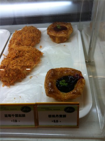 吃完饭从玉林走回家,想起以前看见过这家面包店,感觉还多安逸的,可是因为就在磨子桥下面,所以过去很不方便。刚好这次要路过,就可以买点来尝尝。翻了翻点评,法式奶香片和椰香布丁最受好评,在面包店里溜达了一圈都没有看到,就问服务员这两样还有吗,哪晓得服务员爱理不理的,虽然态度没有差到无法忍受的地步,可是那语气、那神情,让人很无语、很恼火!买了一个樱桃丹麦酥,6元。一看时间,8点56。看点评上说的9点以后会打7折,结账的时候看服务员也没有主动说这个的意思,还是自己提出来的等几分钟再给钱。。樱桃丹麦酥的层次感很好,不过或许是第二天才吃,所以口感很一般。“樱桃”是用的罐头樱桃,这个是小时候的最爱。果酱和酥皮之间有一层类似酱酱的东西,很软滑香浓。在等时间到的时候,又到处看了看,买了一瓶小果酱,到现在都还没吃。话说这家的蛋糕很大啊,核桃布朗尼,还有柜台上的蛋糕切块,都是巨型啊!蛋糕切块和果酱不打折,说个题外话哈,我买的时候都9点了,估计后面也不会有很多顾客了,但是我看柜台上的蛋糕切块剩了至少有三分之二,又不打折,难道是留着第二天继续卖吗?…ดูเพิ่มเติม