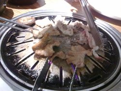 环境不是很好,油烟味道比较重,可能排风不好。南瓜粥蛮好喝的,但是要加钱的。五花肉,肥肉居多,很油腻啊,烤焦一点,再包生菜,还是不错的。调味猪排也很不错,烤的时间久了,也不会很老,很入味。石锅拌饭,里面都是蔬菜,一拌,都混在一起,大口吃起来,很有韩国人的感觉炒年糕有点硬,不够糯,味道也淡了点。查看更多