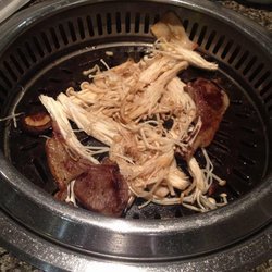 韩山城是我吃的比较早的一家韩国料理店,这里可以吃烧烤,服务员帮忙带我们弄。价格中等,分量还比较的足。金针菇是必点的菜,烤出来干干的,撒上孜然和辣椒粉,吃起来很香。牛仔骨更好吃,比较的大,啃起来有肉,烤出来的肉质香嫩不老,用黑胡椒粉撒上好吃。查看更多