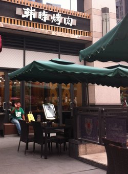 韩时烤肉东大桥路10号世界城商业街D栋1楼(星美影城对面), 朝外大街.环境还是很好得呢,吃得东西也很多,我觉得那个牛肉桑格很不错哦,就是类似于猪肉的五花肉部位,肥瘦搭配的那种,而且很大意盘子,肉片很大,提前调味的味道不错呢,拷起来也很方便的呢。查看更多