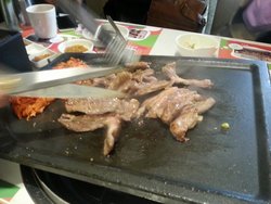 地址东大桥路10号世界城商业街D栋1楼(星美影城对面), 朝外大街韩式烧烤,店内装修比较精致,服务人员还是不错的,基本上是有求必应。烤五花肉还是很不错的,搭配辣白菜或是卷着生菜都是不错的选择。肉块比较厚,烤的时候会有很多油渗出来,看起来都很香。送了好多小菜,土豆泥味道真是不错~~查看更多