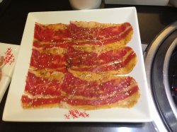 去他们家吃饭,正好是因为周日在楼上看电影,新世界里面吃饭的地方也不是很多个,我和我朋友都是食肉动物,所以韩国料理无疑是我们的最佳选择去处啊,而且我又有他们家的会员卡,所以会有很优惠的啊位于九楼的这家店,可能是因为新世界本来就很大的关系,所以这里的位置绝对是很大的一个占地面积啊,而且装修的相当的不错,大大的吊灯,再加上里面的位置的排放都很分开,所以吃饭吃的很舒服,地方大,而且台子也很大,堆放菜品都很方便,明亮并且宽敞,也能很好的提高品尝食物的感觉啊如果和我一样是食肉动物的朋友,可以像我一样办一张他们的会员卡,他们家一直是有会员折扣的,周末和平时都有不一样的折扣,点这些折扣菜品超级划算啊,价格相当便宜,如果经常会来光顾的话办理一张还是很划算的,我这次的菜品里面就有好几样是凭着会员卡买的,下面逐一介绍一下咯培根金针菇卷(会员优惠):这个菜品很多有韩国料理烧烤店都会有,其实很喜欢吃这个,因为很清爽的金针菇外面包裹着好吃而且又很容易烤的培根,用一根牙签插上,喜欢荤素搭配的朋友,可以直接一整个卷起来烤,这样烤有个好处是培根很容易熟,熟了之后培根的肉会淋在金针菇上面,这样让金针菇在烤的时候也能很好的吸收肉的鲜美的味道,一口下去的感觉很好,而且这两样东西都很容易熟,所以不用烤很久,看到培根熟了,金针菇有点变颜色了就好了,就可以直接品尝了麻辣牛五花(会员优惠):又是一个因为会员卡而得到实惠的好菜品啊,五花肉本来就是烧烤里面最容易烤的一个肉了,这个麻辣的味道更加容易烤,五花肉事先腌制过,所以五花肉很入味,烤完之后肉还有点辣辣的味道,完全的入味,而且菜品也不会很湿,不会烤了不停的滴水,但是又有酱料的汁水,可以很好的湿润盘子,让肉更加容易烤,也烤的更加入味,基本上这个肉一上锅子,稍微翻一下两下就直接可以吃了,时间长了容易焦哦,所以烤这个一定要不停的翻滚,不然就没有美食品尝了啊烤鱿鱼(会员优惠):其实这个菜品点了之后还是有点小后悔的,主要是因为鱿鱼这个东西实在不太容易烤,熟和不熟的区别不太大啊,虽然这个鱿鱼之前是已经调味过了,所以烤完之后不会像没有弄过的味道淡淡的,而是烤完之后味道很鲜,鱿鱼切的还是比较厚的,但是还是属于可以烤熟的那个范围,烤完之后发现这个鱿鱼其实只要发白了就已经表示好了,不用烤太久,不然比较容易老啊,熟了就可以吃了,味道超级不错啊,烤完之后鱿鱼很有弹性,Q弹的也很有口感,味道又很好,绝对值这个价格啊烤五花肉:虽然调味的五花肉吃过了,但是不是会员价也要再来一份原味五花肉的,因为好烤,而且烤好之后味道又好,所以必须要多来一份的,五花肉本身就切的很薄,所以放到烤盘上面就直接孜孜的冒油而且很快就熟了,翻几个身五花肉就熟了,而且原味的五花肉蘸上酱汁和一点孜然粉,相当不错啊,觉得油腻的可以包下生菜,这样可以很好的去肉的油腻啊,而且还补充喜欢的素菜的营养啊,而且很清爽,不错,用大大的生菜包上一小片五花肉,再裹上酱汁,卷一下,一口直接下去,肉的鲜嫩和生菜的清爽,满满的融合再口中,绝对是美味啊烤生蚝:这个是按照个头来卖的,所以大家可以按照需要的量来购买,9元一个的价格,我和我朋友一人来了两个,其实生蚝烤出来吃味道是最好的,但是这个东西有点不好,就是超级难烤,因为外面有个很厚的壳子,所以要熟相当难,如果点了这个菜品的话大家记得一开始吃的时候,这个就可以一直放在边上烤了,这个鱿鱼是先处理过的,上面放上了红辣椒和青辣椒,这样可以很好的提出生蚝的鲜味,又不会很腥,而且还会有点水,这样其实水开了,里面的生蚝基本上也熟了,不会烤的朋友,可以按照这个办法来辨别生蚝是否熟了,只是这个美食吃到有点累啊,烤了半天,其实也就一点肉,一口就没有了,但是辣辣的生蚝很好吃,而且很新鲜,味道很好,物超所值啊,也不枉费我烤了半天啊烤蔬菜拼盘:其实点这个完全是我朋友的主意,不过点了之后觉得还是不错的,素菜拼盘是由五种素菜组合而成的,由红萝卜,土豆片,南瓜片,香菇和还有一个不知道名字的蔬菜组成的,其实这几个里面最喜欢的还是香菇,因为烤好之后会很鲜,香菇只要烤的扁了其实就好了,香菇烤过之后里面的水分会被逼出来,所以会更加鲜,其他几个素菜烤过也不错,最主要的是这几个菜烤过之后原本硬的菜都会变软,而且都会烤出他们的糖份,是的素菜变得软软而且甜甜的入口,味道很好,很不错上述这点菜绝对是够两个人吃的了,而且价格也相对比较实惠,除了上述菜品的价格,结帐的时候还有湿毛巾和炭会收费的,炭是五元一份,湿毛巾是两元一条,这个大家可以选择不需要的哦,其他换盘子的这种都是免费的,不会烤的朋友可以选择经常让服务员工帮忙换盘子,因为毕竟新的有油的盘子烤起来要方便很多啊,最后再给大家看下送的酱料和一碗南瓜粥吧,虽然是送的南瓜粥,但是烧得很糯很入味,甜甜的很喜欢吃啊查看更多