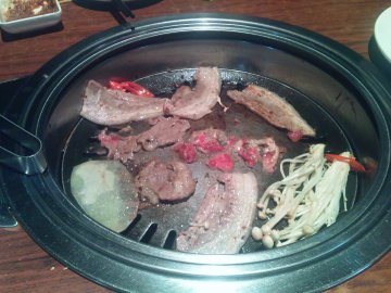 做团购的时候尝试了一下,反正也挺像吃烤肉的,就团了一个,还不错,比很多名不副实的团购好多了,第一,服务还可以,换底盘换的挺勤快,生菜和免费的南瓜粥给的也挺爽快。烤鸡腿肉比较好吃,较其他的肉要嫩,精品五花肉有点肥,烤时间稍微长点,把肥油烤掉比较好吃。…查看更多