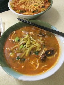 项记的面条特别的是其汤汁,汤汁是经过西红柿调制的所以汤汁有一种特殊的酸酸的味道,加上项记的面条口感比较的硬,这样酸酸的汤汁也起到了软化面条的作用。这里的三鲜面比较好吃,最喜欢吃三鲜面里面的鸡蛋了,由于是滚水打的鸡蛋,所以鸡蛋是糖心的,加上鲜鲜的汤汁,鸡蛋就非常的好吃了。查看更多