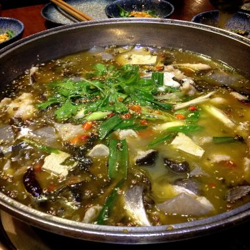 最开始不知道这边也有一家店还是朋友带过来的来一次就知道地方了我们要的酸菜鱼很嫩的江团超级好吃下面居然还有煮得软软糯糯的粉条很宽的那种酸菜的味道很酸很浓郁非常棒~