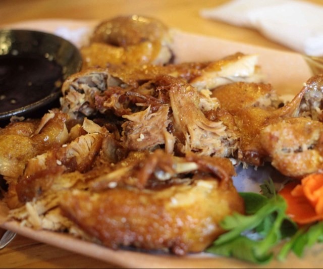 进了风波庄就有店小二招呼你,喊声非常响亮,很有有意思的,感觉好像到了龙门客栈一样。大力丸的里面是肉和咸蛋黄的混合物,外面是用糯米包着蒸的,味道十分好吃。特色酒据说是店主自己酿制的,号称是英雄酒,好喝。口水鱼的鱼肉蛮嫩的,水煮鱼的烧法很好吃,鱼汤里还有花生很香的。一桶天下就是把排条和莴笋烧在一起的,盛放在一个竹筒里,很有创意的一道菜。…查看更多