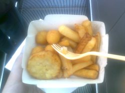 他们家的一套东西,味道一般,但形状很可爱,是一根根很短的小薯条,长得胖胖的,很可爱,还有一个个的小圆球,也是土豆做的,还有就类似于薯饼的东西,不过他们家的东西味道太普通了,感觉炸得不透,一点香味也没有,加点番茄酱,很简单的配置,不脆不香查看更多