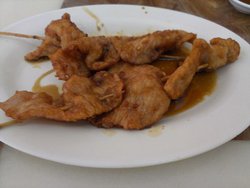 他家的里脊肉串味道很好吃,再次去的时候,比以前涨价了。点了两份,一串上面有三片肉,炸的嫩嫩的,有股油炸食物特有的香味。盘子里面淋了酱汁,这就是画龙点睛的地方,汁水甜甜的很有本帮的味道,也有小时候的味道。香辛料并没有盖过里脊肉的原味,每次去必点这个。查看更多