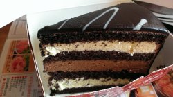 我家那位心心念念要吃这家的蛋糕,呵呵,以前开在公司楼下没什么生意的感觉,自从开到人民广场一下子爆红了,这次路过虹口龙之梦看到开了分店就买块回去给他试试。买了块浓巧克力蛋糕,23元,还是蛮大块的,一层一层的味道口感很丰富,黑巧克力白巧克力牛奶巧克力符合味道综合了苦巧克力的苦,白巧克力的甜,牛奶巧克力的奶味,倒是蛮好吃的。查看更多