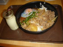和吉野家差不多的店 名字老是搞混 招牌是牛肉饭 有芝士 照烧的和咖喱的 比较喜欢芝士和照烧的 芝士料很足 吃的时候有很明显的拉丝效果 满满的爱意 端上来的时候牛肉是盖住整个碗的 虽然切的很薄 不过看上去还是很满足的 照烧的牛肉味道是最好的 甜甜的汤汁配着饭一起吃 很棒 牛肉处理的很嫩 肥瘦相间 打发饭点还是不错的 查看更多