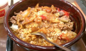 食其家这家店开在奥特莱斯内,店不大,但是生意还算不错。光顾这里吃饭的人都比较速度,都是来这里填保肚子的。比较喜欢它家的肥牛饭,这里的饭可以根据自己的胃口来选择要标准的或者大碗的。里面的牛肉很嫩,搭配上洋葱炒制后更鲜香可口,非常好吃。