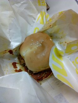 零号线做的活动只要1块钱就可以买一个大汉堡一共买了两次而且是送货上门还是很方便的汉堡分量很足,比一般KFC的要大感觉有点美式汉堡的味道汉堡比较辣里面有好大一块肉还有好多青椒味道还可以就是太辣了建议大家可以选很多其他口味的