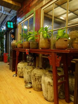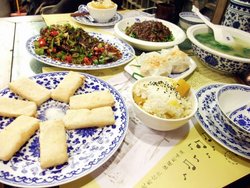 陪同事来这里办事,然后就陷入沉思,一个世界性的问题:中午吃什么?这个地方真心没什么可吃,想好好吃饭的话我也只想到食堂餐厅,于是团购了个四人套餐,走起!蒸鸡蛋,很大的盘子,虽然盘子浅可是味道很不错,鸡蛋嫩嫩的,不咸不淡,挺好。糍粑,浅黄色的方块,这不是海绵宝宝!这是软软糯糯的糍粑!真的好好吃,香喷喷,咬一口糯而不粘,外脆里软,粘上白砂糖,啧啧啧,停不下来呢~不过硬菜就差了点,是一大锅鸡,佐料相当多,翻几下都是各种配料,生姜块比鸡肉块要大,略有些辣,可是不是特别入味,有些干巴~不推荐~饮料还蛮爽口的,适量的冰度喝一大口,舒服呢!再一人一碗红薯米饭,我们仨胃不大的人刚好合适食堂餐厅的环境一直是我的最爱!复古的装饰,叽叽叫的鸟,还有一池鱼!这也算一道风景啊!能收集到这么多老物件,老板,你辛苦惹!…查看更多