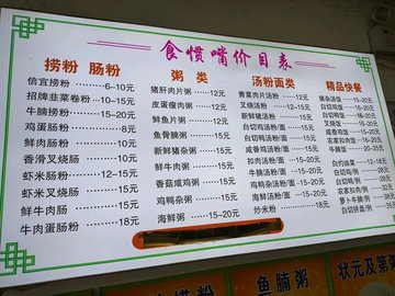 信宜捞粉 / 招牌韭菜猪肉卷肠粉 / 枸杞猪杂汤 / 白切鸡 / 牛腩捞粉 / 猪杂汤饭