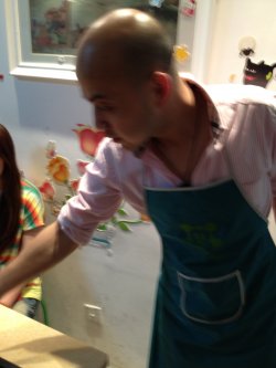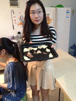 幸运的被开饭啦抽中参加DIY活动。馍馍熊西点DIY烘焙坊是开在一家公寓楼里,出了中山公园地铁口走约莫15分钟就能到达。还算方便。老板和老板的老公很幽默,店面的装修很温馨的~面团粉有三种口味,抹茶,原味和可可口味的。我选择了可可的。先是把面团奋力的和黄油柔和在一起,一直到不掉渣,然后用擀面杖把面皮擀的薄薄的,再用磨具把面皮抠出各种卡通形状,然后放入铁盘里,置入烤箱烘烤10分钟即可。待饼干凉透了便可装袋了,味道很不错哦。另外我尝了一下抹茶口味和原味的饼干,其实原味的最好吃啦!并且做出来的饼干颜色也最可口诱人呢!谢谢开饭啦的活动~…查看更多