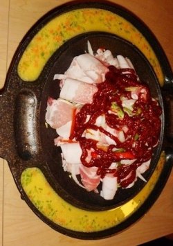 沿袭着所有韩国料理送小菜的原则,这里也不例外,牛肉火锅味道不错,秋冬季节喝起来很暖胃,中间那个大面饼就是方便面的样子,味道也类似方便面,合着肥牛还有汤吃味道不错。食材很丰富,金针菇还有蔬菜不少。铁板奶酪辣味鸡,奶酪和鸡肉混合在一起,微咸微甜的口感很特别,鸡肉很嫩,皮烤焦了不油腻。整体价格不算便宜。查看更多