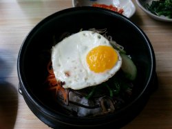 很偶然的一个机会去了这家店,很不起眼的一家小店,进去却又别有洞天,还蛮大的,店里的摆设装饰啥的都是韩国的,电视里也是播的韩国的综艺节目。菜单很重,但是其实菜的种类蛮有限的,很奇怪,这家店的鸡肉卖的比牛肉贵,而且贵好多。价位偏高,但是味道很不错呀,让人觉得价位还是高的合理的。送的4个小菜。泡菜花生米粉条菠菜,喜欢软软的花生。石锅拌饭,纯素的,有菠菜豆芽黄花菜胡萝卜笋瓜,但是依然好吃,蛋黄的熟度刚刚好,流黄耶。加上酱拌开了超级美味。一人能拿下!这是拌开后的样子,有没有很想吃啊。铁板奶酪鸡,推荐菜,果然味道很赞,鸡肉稍硬,奶酪很奇特,整体口感偏甜。五花肉泡菜锅,里面有豆腐豆芽蟹棒等等,种类很多,汤够酸,不宜多喝。我们要了方便面,配上面,酸汤还是能接受的~铁板鱿鱼,超级好吃啊,鱿鱼脆脆的口感好好,甜甜的,吃完了还想吃。查看更多