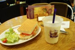 晚餐@cofeeebean peachsai等級42010-11-074 瀏覽 關注 不知道为什么一个朋友特别推崇这家,我觉得还行吧,可以无限上网吧,看到2-3个人坐着玩笔记本,其他人都是打包带走,小妹服务态度还可以,我在那边左看右看也不知道喝什么好,看到有个广告牌是新品,ms一个香蕉味,一个杂莓味的,我就选了香蕉味的,好像名字叫什么malibu,具体真的不记得了,大大的一杯,喝上一口让我想到以前的“香蕉先生”,“香蕉先生”1.5元,这杯30元+一朵奶油5元,饭还没吃,本来想点一个三文鱼挞,后来看到有三明治,点了一个烟熏三文鱼的三明治,38元,放在一个大盘子里面,方方正正不像想象中的那种三角形,旁边配了2个小的圣女果、苦菜叶、三明治里面的酱味道不错~ 稍微一吃70几元,现在的物价看不懂~…查看更多以上食評乃用戶個人意見 , 並不代表OpenRice之觀點。讚好分享晚餐@cofeeebean 香啡缤 https://s.openrice.com/KtbT100DHa000檢舉 張貼 評分3味道2環境2服務3衛生2抵食推介美食正正
