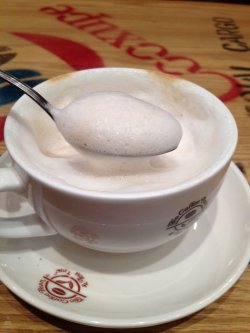 平时很少喝香啡缤,吴江路这家是开在路口,等人的时候就进去买了杯饮料。香啡缤的环境很舒适,浓浓咖啡香配合着温馨的环境,让人很想泡一下午。买了一杯瑞士摩卡拿铁,喝起来没有什么咖啡味,感觉在喝一杯热巧克力,味道挺浓郁的,也不会很甜。喝上一杯香气浓郁的饮料,等人的时光也不会显得无聊。价格感觉比星巴克贵上一点。查看更多