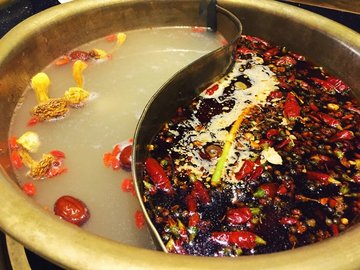 对这家食用后锅底泼墨杜绝二次使用卖点和川味表演垂涎已久,看到亲们发的各种涮品图片更是对探店表示迫不及待啊,哇咔咔,正好中了玩乐会社区的双人餐奖品,探店只在一帖之间呐,看来平时多活跃一下也是极好的。地址指引: 南开区凌宾路奥城8号彩柒汇商场一二楼(金逸影城楼下)位置还是挺明显的,上次来香榭时好像留意过,莎莎旁边的一个夹道,有服务生在领位。问了店员小妹,打印了单子,因为套餐AB里都有几样菜品是售罄,所以就拼了一份套餐出来,差额补了差价。Mini胶原蛋白鸳鸯锅,46米。胶原蛋白是用的猪蹄和芸豆调汤,感觉还是挺鲜美的,只不过看到了猪蹄上了各种毛发,弱弱的又放回锅底,专心吃辣锅了。要的微辣锅底,程度是大家都可以接受的那种,麻和辣的味道都比较适中,不会觉得呛。自助水果小菜和调料,9米一位。虾片有点绵了,木耳味道有点不新鲜,还是比较喜欢水果,西瓜和哈密瓜都很甜,吃起来特别爽口解腻。筷子,2米。筷头不重复利用,这样的设计还是很贴心的。特制柠檬水,12米一扎。好久没给上催了一下,领班答应给做,呃,答应。用柠檬和薄荷叶调制的柠檬水,酸甜,解辣神器。脆×4,68米。包括黄喉、毛肚、鸭肠、鸭胗四种食材,最适合我这种什么都想尝尝的吃货。黄喉爽脆,掌握好火候之后口感特别棒,灰常好嚼。毛肚就没这么幸运了,虽然也挺嫩的,感觉嚼起来比较吃力。鸭肠涮完之后也是很扎实的口感,特别有嚼劲。相对更喜欢鸭胗,可能是第一次吃到的原因,觉得嚼起来更香,而且难得的没有脏器味儿。手切鲜羊肉,42米。说实话觉得口感并不太像羊肉呢,可能是因为没吃出膻味的原因,和别家店比起来,颜色也要浅好多。煮后食用还是挺劲道的。金箔油条虾,半份14米。虾茸和油条的结合,卖相不错,卖点十足,只可惜担心虾茸没熟就多煮了会儿,油条煮过之后有点过软了,影响了口感。鸡肉派,26米。新菜品鉴的节奏,本来不太看好,没想到味道还不错。鸡肉泥拨成丸子下锅,煮熟后肉质劲道又鲜嫩,蘸上麻酱料炒鸡有爱。滴翠腰花,半份16米。从来没试过火锅里涮腰花,但这么搭配真心科学啊。腰花因为裹上蛋液,口感变得格外鲜嫩可口,特殊的味道更适合辣味锅底,一口一口停不下来。山药,12米。清洗的非常干净,去皮后很新鲜,白色特别透亮。感觉清汤和辣锅煮完都还不错,绵软中带着一丝脆度。相思菜,12米。摆盘倒是挺美的,只是煮完之后和花椒纠缠子在一起有点纠结,味道比较类似于平时吃到的小咸菜,如果没记错的话肯德基的饭里貌似有类似的小菜。绿茶饼,半份9米。三只饼装在很Q 的小竹篮里,加了芝麻很酥香,但馅心味道和皮子的绿茶味都淡了点,中规中矩。焦糖布丁,8米。服务生当场用喷枪喷出了焦糖脆皮,效果真是棒棒哒。布丁软滑,意外是喜欢的香芋味道,瞬间吃光光。整体来说,食材新鲜,环境也不错的一家火锅店,服务态度还成,下次去想要试一下九宫格。…查看更多