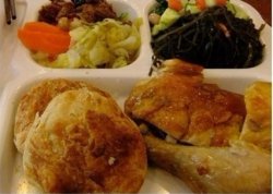 第一次知道香妃烤鸡还是北京的姐妹儿拽我去的,说什么香妃烤鸡是她们从小吃到大的,觉得特别特别好吃,当时她在我前面吃得一脸满足内流满面欠抽的样子让我很==。 后来我才知道香妃烤鸡是北京一家老牌子了,貌似在北京人心目中占据重要位置。不过我还真没啥感觉,当时我点了一个套餐,有一个嫩嫩的烤鸡腿,四个小菜,两个烧饼和一碗粥,一共是18米,还不算贵; 鸡腿烤得还可以,外焦里嫩的,很香很香。。四个小菜分别是海带丝,拍黄瓜,花生米,和包菜什么,每个菜都给你舀一点,拼在一起,有点像凉菜。。烧饼的味道还不错,有烤过的味道,不过粥真心一般,很稀很粗糙,端上来的时候还是凉的。。。 总的来说,还算可以把,就当小吃吃了,可以尝试一下。 查看更多
