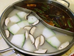 团购去的,我们三个人吃双人套餐,这家店离新源里那边的渔阳饭店很近,地方不太好找,我们开车去的,又打电话咨询了好几次才找到,在一个小区里面。一进去是鱼池还有卖茶叶和酒的柜台。里面环境也很好,挺亮堂的,有沙发椅,坐在很舒服。服务员挺麻利儿的,服务挺到位的,就是少了一些热情劲儿。锅底可以双拼,选了海底椰和瑶柱的,肉选了花雕肥牛和鸡肉,其他都是固定的。海底椰,汤是乳白色的,很浓郁、香醇的椰奶香味,喝一勺子汤,满口留香。小料是自选的,因为双人餐,所以我们三个人要再买一份,9块钱。好多种调料自己搭配,不过好像没有麻酱,可能因为这里是港式火锅店的原因。瑶柱冬瓜的,味道很不错,有甜味,汤特别好喝,很浓郁的鲜美味。花雕肥牛,肥牛上来时候我闻了闻果然有酒香味,腌制的不错,涮了之后,很香的花雕酒的味道,很香醇,肉质很棒,肉很劲道,嚼着劲道的口感。鸡块,这个上来后很多鸡的不太好的部位,例如鸡脖和鸡爪,也有一点儿肉,虽然说不太好的部位吧,不过涮了吃着还是挺嫩的。脆脘片,有些小刺所以需要小心着吃,鱼肉还是很不错的,很新鲜,下锅煮白了,吃起来很脆。生蚝,个头挺大的,土腥味不大,挺新鲜的,涮着很美味。鱼蛋,个头比一般鱼丸大,口感很Q弹,真的是实在鱼肉做的,吃起来很细腻,里面不含一点儿淀粉。腐皮卷,炸制的,直接吃特别酥脆,涮之后吃变得软软的。蔬菜拼盘,都是新鲜的蔬菜,种类不少,土豆萝卜的拼盘也都不错。桂花糕,晶莹剔透的,做得很精致,挺浓郁的桂花味道。手擀面,绿的,应该是菠菜汁和面的吧,很劲道,加上些菜和肉,浇上浓郁的汤,真的很棒。查看更多