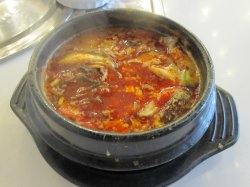 地址: 朝阳区东大桥路10号世界城商业街D栋1楼位置有点稍微的不好找。因为是在楼的东边不临街,要稍微绕一下开能看到的。餐厅一共有2层。我们去的时候11点多没有什么人。所以就在一层了。但是1层稍微有点热。环境还是很不错的。因为是大中午的。而且天然也热。就没有吃烤肉。餐前小菜挺丰富了。上了5、6种,喜欢这种餐前的开胃菜。尤其喜欢那个土豆泥。软糯香甜。很好吃。我又跟服务员要了一碗吃呢。辣牛肉汤 热乎乎的一碗牛肉汤啊。里面配菜很丰富。蘑菇、豆芽、粉条还有牛肉丝和蛋花。汤的颜色红红的,看着辣。但是吃起来没有那么辣。再搭配一碗米饭,味道特别好。 青椒炒鱿鱼 这道菜颜色很漂亮。鲜红的颜色。应该是用韩国辣酱炒的。青椒很脆。鱿鱼刀花切的很好看。口感香脆鲜。紫菜包饭 这个造型很漂亮。看着都不忍心吃了呢。里面有鸡蛋、香肠黄瓜 。味道香浓。米饭软糯,黄瓜爽脆。味道很好呢。美食体验总结:服务不错。小菜很地道。牛肉汤很入味。地方特色浓郁。值得品尝的一家韩式餐厅。下次去试试烤肉哦。…查看更多