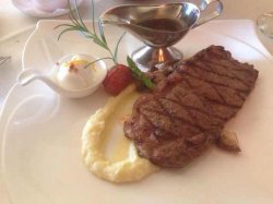 北京很老牌的法式餐厅,就在崇文门饭点的2楼,有2个门,一是从北门进去,二是直接从饭点的正门进去。环境很好,服务也不错,就是价格有点偏贵,2人消费了600多,感觉吃的不如对面的新侨实在。点了黑椒牛扒,5成熟,厨师做的的确好,牛排中间微红,但是没有血汤,非常嫩,黑椒味也挺浓的。煎三文鱼比较好吃,上面浇的是芝士酱,三文鱼煎熟后,肉就没那么软嫩了,有点硬,很劲道。甜品只点了一块乳酪蛋糕,品种不错,很腻,但不甜,2人分着吃一块刚好。…查看更多