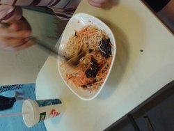 地理位置方便,装修简约,典型的快餐店。拉面很快,卖相还好。不过汤不是很清,有点淡黄色,汤比较咸。面条挺劲道的,牛肉很入味很好咬,不过萝卜没味道,口感也一般。辣椒油很香,不太辣,很喜欢。…查看更多