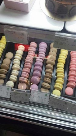 最近发现马卡龙超级火的,尤其是在微薄上人气灰常旺。不过我这个人本来就不大爱吃甜的东东,不太感兴趣,要不是正好和闺蜜逛街的时候路过,也不会特意去的。这家店的装修不错,像一般的甜点店那样给人很甜蜜的感觉。闺蜜买的是黑巧克力口味的,一个小小的,不过给人的感觉很可爱哦。我尝了一个,真心甜,有点受不了。。。
