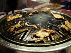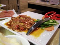 和朋友一行三人周五晚上去的他家,是团购的3人餐。去他家之前有好好做了下功课,但去了之后还是有些超出了我的预期,各方面都很好,团购真是很超值,所以他家在我这里评价很高。环境方面,他家很大,餐位没有摆的很满,显的很宽敞,吃烤肉也没有觉的味很大,不错;吃的方面,烤肉的质量都挺不错,够大片,吃起来很有肉感,其他的菜品质量也挺好,得特别说一下,他家的自助小料真好,选择不算多,但每种料都很有质量而且味道好,大爱他家的小料们;服务方面,他家的服务生都是会笑的呢,感觉真的很好,你提的要求,服务生们都是笑着答应,而且都迅速的给答复,不是敷衍的,有的服务生甚至觉的惟恐给我们的答复慢了,有些惶恐呢,反而我觉的有些不好意思了呢。总的来讲,这次团购探店很成功,以后还会考虑去他家的。纯果乐,原价5米。朋友的。尝了口,说不上是啥味,不是我喜欢的味道。立顿柠檬,原价5米。这是我的,就柠檬茶的味,把冰弄出去,味儿还挺浓的,是我喜欢的味道。原味烤羊肉,原价37米。肉肉看着不错呢。虽然团购上注着是原味羊肉,但这样看MS是略有腌过的。后来烤后沾着各种作料吃,都挺好吃,感觉肉肉质量挺好的。烤猪五花肉,原价35米。看着肥的好多,但这款很合我的意,我爱五花肉肥的部分烤的焦焦的,超好吃的。想到肥肥的五花肉烤到流油,之后焦焦干干的样子,口水啊。沾着他家的烤肉酱吃,都很好吃。特色烤牛肉,原价33米。感觉这个肉肉和羊肉的很相似,不过吃是可以吃出不同来的。这个应该是腌过的,下面还有浸出的汁料。也是挺好吃的,肉质不错。烤红薯片,原价10米。烤完有些透明的,甜滋滋的,挺好吃的。金针菇,团购上写的是烤平菇,给换成这个了,MS金针菇比平菇贵吧,赚了。他家金针菇比较细,很容易烤好,挺好。爽口泡菜,原价12米。这个菜是纯泡菜,而且有些咸,我就尝了下,朋友们也没怎么吃,浪费了,怪可惜了的。可汗烤肉饼,原价14米。这个应该是把烤好的肉夹里面一起吃的。没吃,这个不是我的菜,我是要直接吃肉的,那样才有肉感。朋友吃来着,据说还不错。烤馒头,2串,原价6米。看着不错,烤馒头加了孜然烤的,我喜欢。烤馒头黄橙橙的颜色,对我很有诱惑力,我居然破天荒的吃了半个,好吃,外面有些酥,里面的还软软的。送的卷肉生菜,就卷着肉吃了一次,不行,卷上生菜都没吃肉的感觉了。后来生菜我都是沾着麻酱吃的,烤肉还有麻酱料,牛吧,这回我吃小料吃爽了。送的辣椒圈+蒜片,都挺新鲜的,我是空口沾麻酱吃的,辣椒圈有点小辣,爽爽口,解解腻,挺管用的。小料自助里除了小料还有凉菜、薯片、玉米、水果啥的,选择没有很多,但都挺不错的。他家烤肉酱有几种:烤肉香辣酱,味还是挺浓的,里有肉有葱碎,有够辣味,还不刺激,我好爱,吃了两碗。烤肉酱,不辣的,朋友自己加了些辣椒油,辣度远没有香辣酱的辣,我尝了口,还是喜欢香辣酱,我是食辣滴。烤肉孜然干料,吃烤肉,我还是喜欢干料,没有很咸很辣,浓浓的孜然味。烤肉胡麻干料,这个料第一次见,得尝尝。胡麻干料味道于我来讲,略有些淡了,一般吧。烤肉特味酱,这个料也是第一次见,特味,光名字我就好奇了,到底特成啥味呢。没多取,我还是比较有数的,味道是挺特别的,说不上什么味,里面有肉酱,不是我喜欢的味道。麻酱料,是火锅酱类的,他家麻酱味调的挺好,没有很咸,可以多吃些也无妨。…查看更多