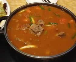 骨堡浓汤锅 在海淀区成府路23号 五道口宾馆1楼。骨堡浓汤锅 也是韩式的餐厅,他家主要是汤锅,就是类似于火锅一样,不过汤是煲了特别久的,很香,很浓郁,可以自己选择在里面煮些东西,或者只是锅里原有的东西。骨堡浓汤锅 他家的番茄排骨锅很不错,排骨特别 软烂,挺香的,排骨是品质比较好的骨头,上面的肉比较多,很容易啃,和番茄煮一块,有些酸甜的味道,挺好吃的。汤特别 好喝,很开胃,暖暖的,可以点些米饭,汤泡米饭吃,很不错,特别 下饭。查看更多