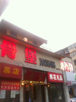 骨堡浓汤锅 在海淀区成府路23号 五道口宾馆1楼。骨堡浓汤锅 是一家挺小的店,他家也算是连锁店铺了,有好几家,清华东路也有一家。他家主要是汤锅挺有名的,类似于火锅的感觉,汤是骨汤,煮的比较久,熬制出来的,比较香浓,味道不错,里面有排骨的,有牛肉的,有牛蛙的等等,我还是比较爱吃排骨的,排骨炖的很软,里面还放了番茄,韩式的辣椒 酱什么的,感觉挺好吃的,特别 入味,汤可以直接喝,也可以用来拌饭,自己可以再点一些菜放在里面涮,挺不错的。查看更多
