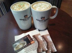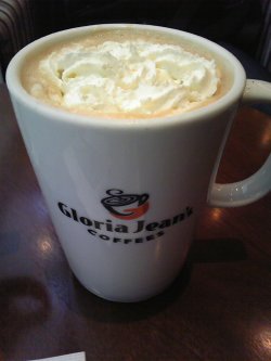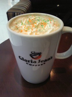 ’‘Gloria Jean's Coffee’‘,双人沙发位靠着落地玻璃很亮堂。据说gloria jean's乃澳洲风格,偏甜,而这款这是完全无糖的。点了摩卡,很大一杯,很好喝。咖啡的名字都好诱人,喜欢推荐菜:热巧克力,白巧克力,摩卡餐厅特色:可以刷卡查看更多