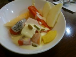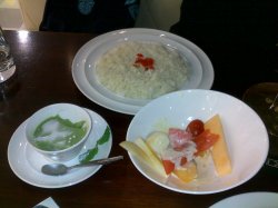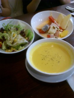 早早的订了位子。。11点刚过开门就过去了。。可能是刚刚开门的关系,服务生的态度一般。。不过开始正式营业了。。态度就很好了。。蛮莫名的说~~点了份和风猪排咖喱饭。。推荐推荐。。猪排超级大块。。咬下去松脆可口~~~配套的咖喱上撒上芝麻。。非常香~~~果香牛肉咖喱里的牛肉也挺多的。。。牛肉非常嫩~~配的泰国香米饭上面撒点生姜干也很好吃~玉米浓汤不错。有浓厚的奶油味~~非常的浓稠~田园蔬菜汤就比较一般。。很清淡。麽啥味道~~芒果奶酪。。酸酸甜甜。。奶香味非常浓郁~相比之下。抹茶布丁就比较清淡了冰桔茶也推荐哟~~~。。如果感觉辣了,喝一口冰桔茶非常爽口~~那个小豆蔻热奶茶。。有股老姜的味道。。而且非常非常淡。。比较一般呢~水果色拉里的水果很多。。西瓜超级甜。。好吃好吃~~蔬菜色拉的玉米粒非常清甜。。也推荐哟~~里面的服务生态度都不错。。感觉很像台湾人呢。。他们店里有下午茶套餐哟。。也挺划算的…查看更多