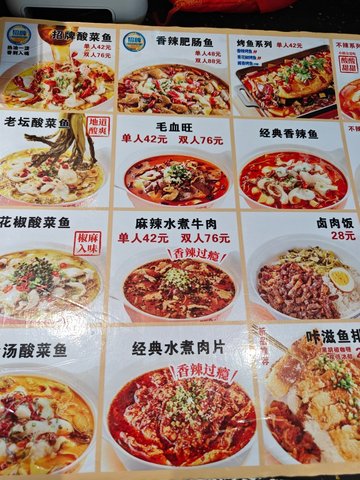 老壇酸菜魚 / 青花椒酸菜魚 / 公舉番茄魚 / 熱熗酸菜魚 / 果味檸檬魚 / 酸辣粉魚